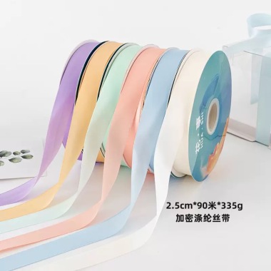 花艺家居类丝带用于鲜花包装、家居装饰(窗帘、抱枕、挂画);核心要求:轻盈、色彩柔和、耐轻微拉扯;适配材质:雪纱、涤纶、棉、罗纹丝带。